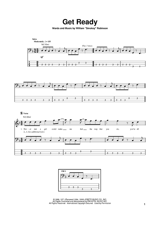 Digital Sheet Music for Get Ready by Smokey Robinson, The Miracles, Rare Earth, The Temptations scored for Bass Tab; id:381460