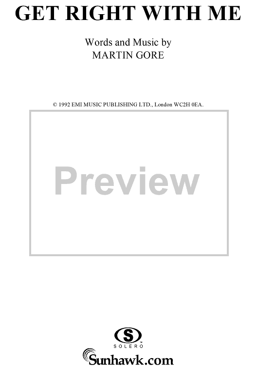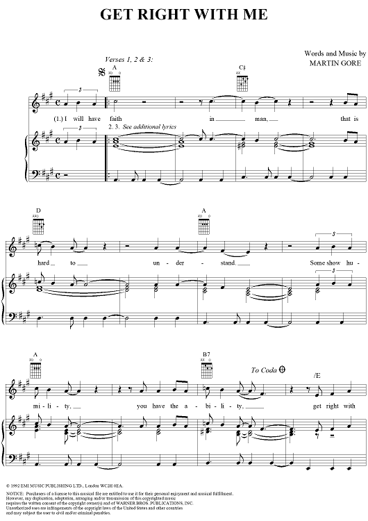 Digital Sheet Music for Get Right With Me by Martin Gore, Depeche Mode scored for Piano/Vocal/Chords; id:268270