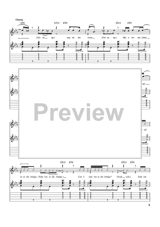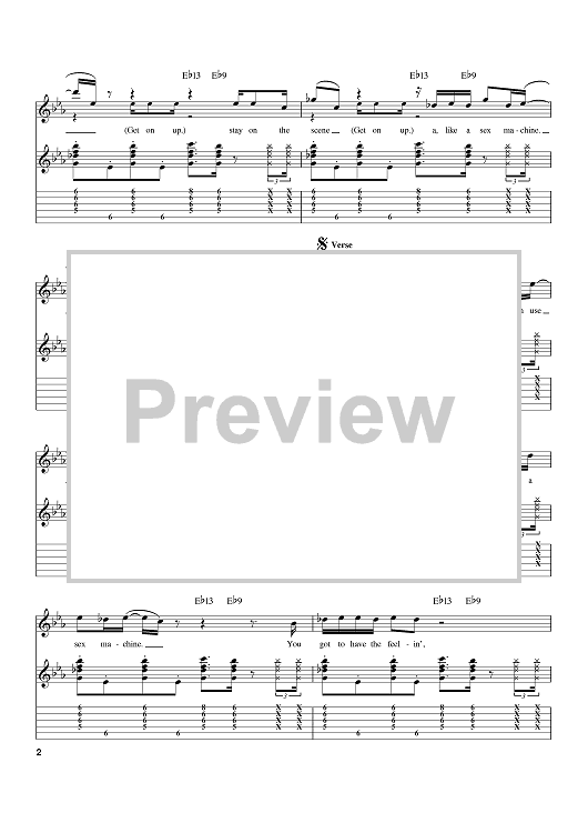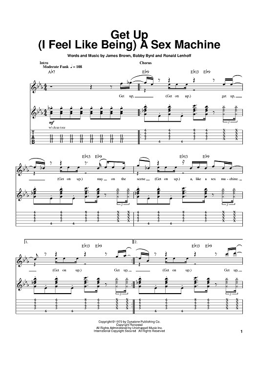 Digital Sheet Music for Get Up (I Feel Like Being) A Sex Machine by James Brown, Bobby Byrd, Ronald Lenhoff scored for Guitar Tab; id:374345