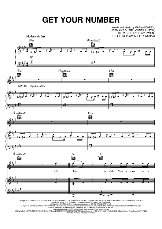 "Get Your Number" Sheet Music by Mariah Carey
