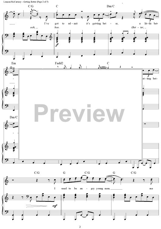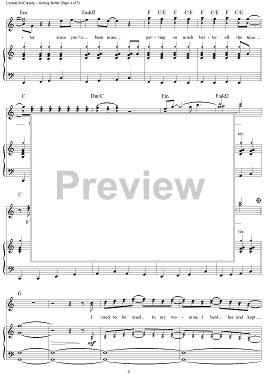 Digital Sheet Music for Getting Better by Paul McCartney, The Beatles, John Lennon scored for Piano/Vocal/Chords; id:404267