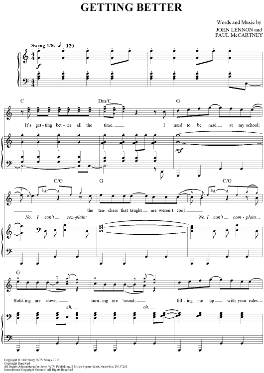 "Getting Better" Sheet Music by The Beatles
