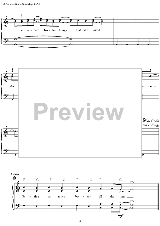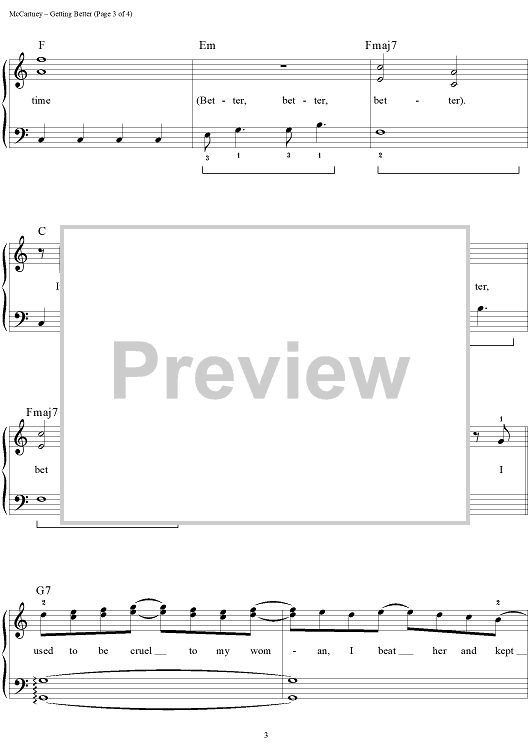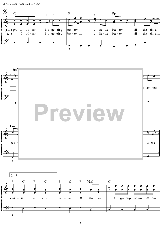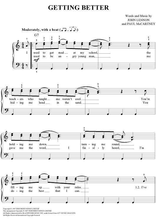 Digital Sheet Music for Getting Better by Paul McCartney, The Beatles, John Lennon scored for Easy Piano/Vocal/Chords; id:450178