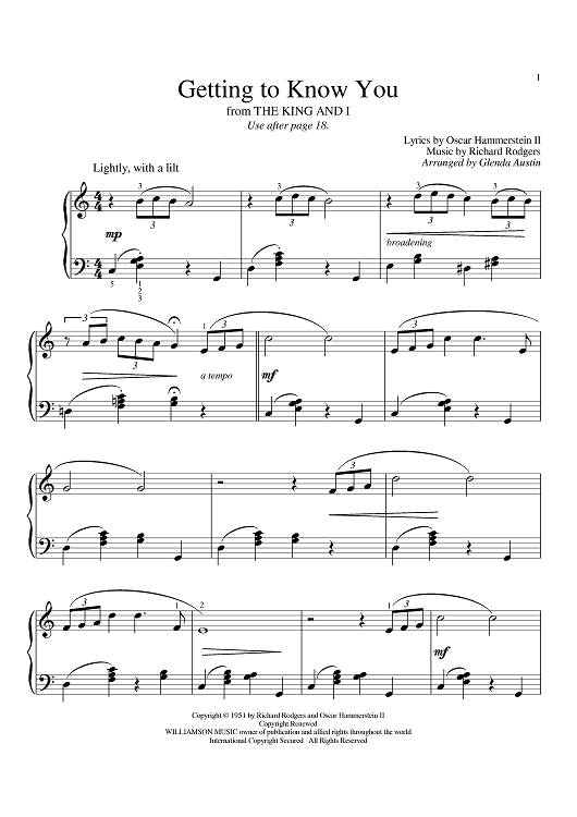 Digital Sheet Music for Getting To Know You by Richard Rodgers, Oscar Hammerstein II scored for Piano; id:388958