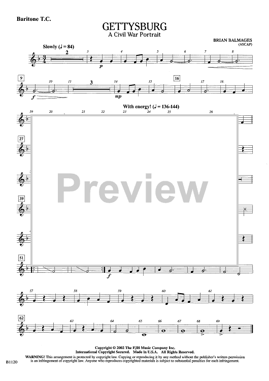 Digital Sheet Music for Gettysburg (A Civil War Portrait) - Baritone TC by Brian Balmages scored for Concert Band; id:443051