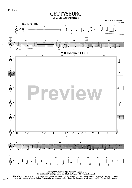 "Gettysburg (A Civil War Portrait) - F Horn" Sheet Music by Brian Balmages