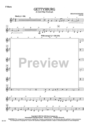 Digital Sheet Music for Gettysburg (A Civil War Portrait) - F Horn by Brian Balmages scored for Concert Band; id:443048