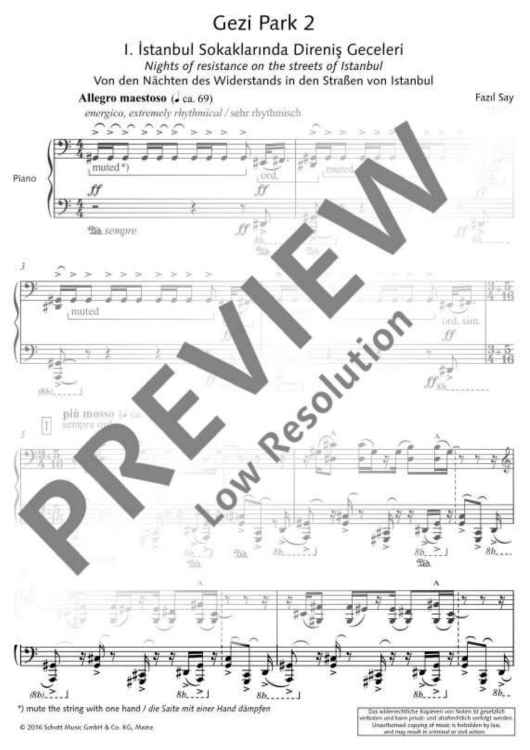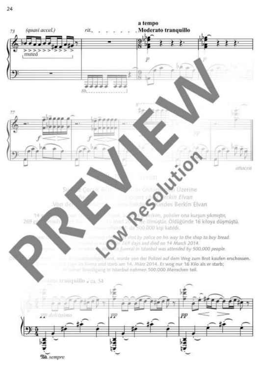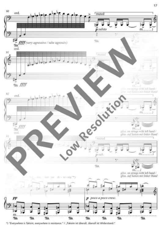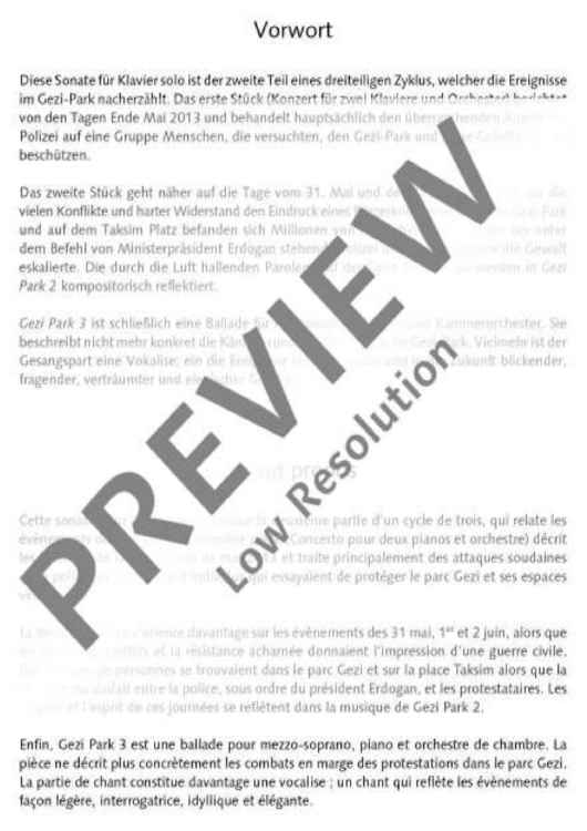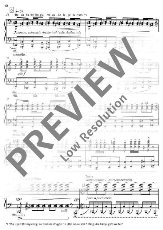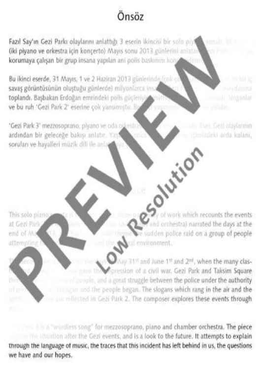 The four-movement piano sonata is the second part of a three-part cycle: a compositional reflection of the civil war-like events in Istanbul's Gezi Park in the spring of 2013, of the slogans filling the air and of the spirit of these days.