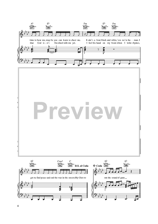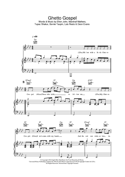 Digital Sheet Music for Ghetto Gospel by Elton John, Bernie Taupin, 2Pac, Deon Evans, Marshall Mathers, Luis Resto scored for Piano/Vocal/Chords; id:386596
