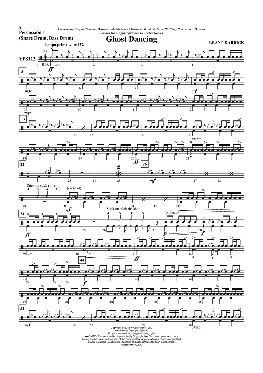 "Ghost Dancing - Percussion 1" Sheet Music by Brant Karrick