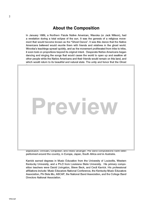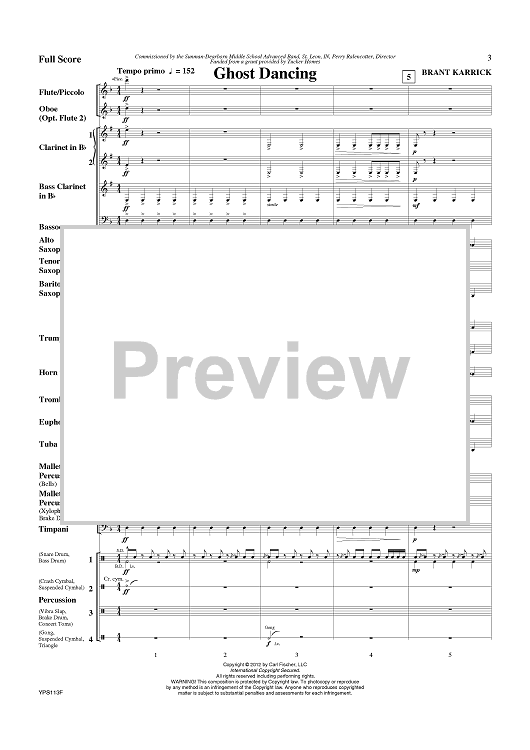 Digital Sheet Music for Ghost Dancing - Score by Brant Karrick scored for Concert Band; id:431471
