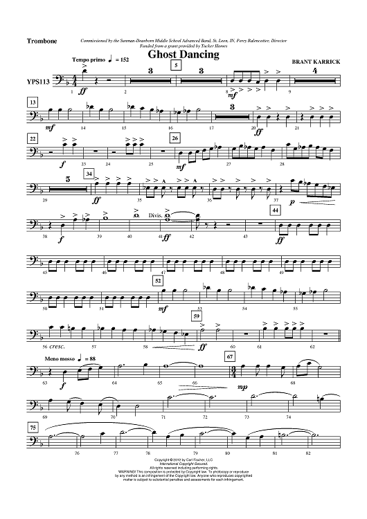 Digital Sheet Music for Ghost Dancing - Trombone by Brant Karrick scored for Concert Band; id:431484