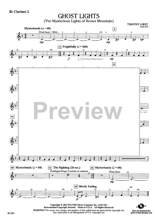 Digital Sheet Music for Ghost Lights - Bb Clarinet 2 by Timothy Loest scored for Concert Band; id:439377