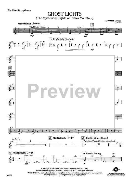 Digital Sheet Music for Ghost Lights - Eb Alto Sax by Timothy Loest scored for Concert Band; id:439379