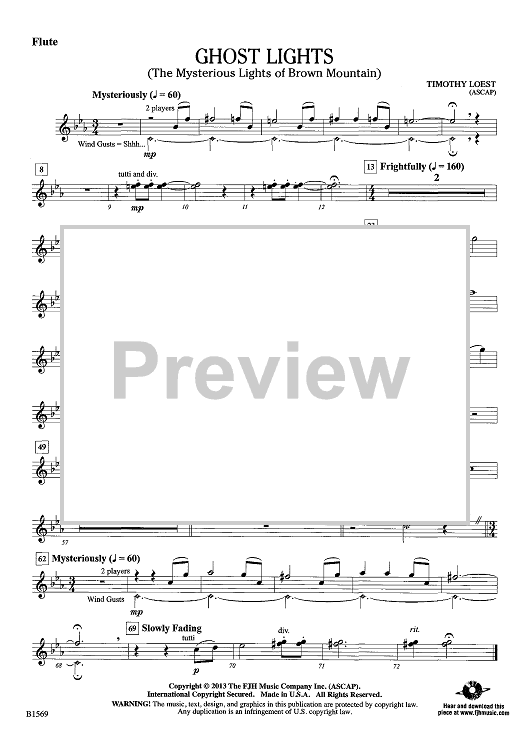 Digital Sheet Music for Ghost Lights - Flute by Timothy Loest scored for Concert Band; id:439373