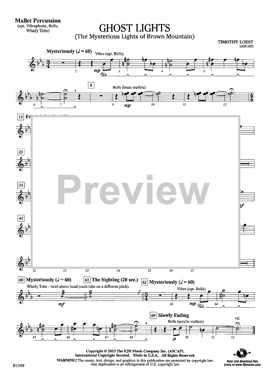 Digital Sheet Music for Ghost Lights - Mallet Percussion by Timothy Loest scored for Concert Band; id:439389