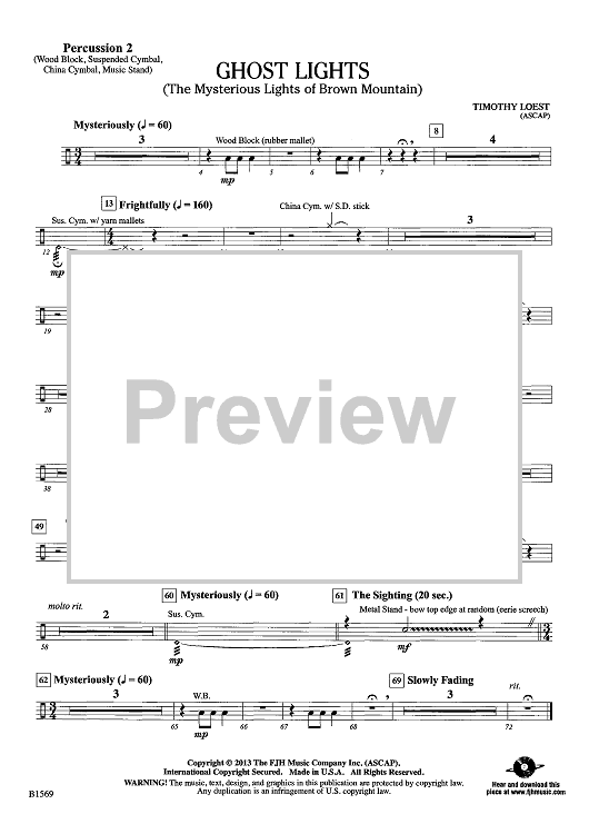 Digital Sheet Music for Ghost Lights - Percussion 2 by Timothy Loest scored for Concert Band; id:439392