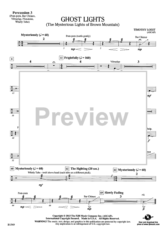 Digital Sheet Music for Ghost Lights - Percussion 3 by Timothy Loest scored for Concert Band; id:439393