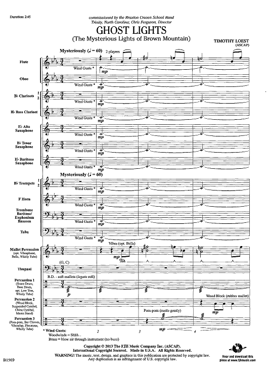 Digital Sheet Music for Ghost Lights - Score by Timothy Loest scored for Concert Band; id:439371