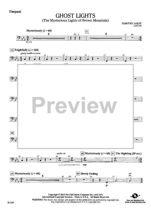 Digital Sheet Music for Ghost Lights - Timpani by Timothy Loest scored for Concert Band; id:439390