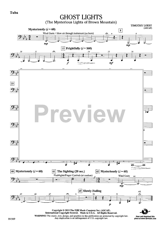 Digital Sheet Music for Ghost Lights - Tuba by Timothy Loest scored for Concert Band; id:439388