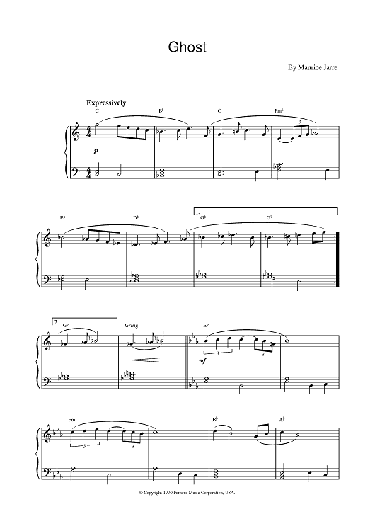 Digital Sheet Music for Ghost by Maurice Jarre scored for Piano; id:380800