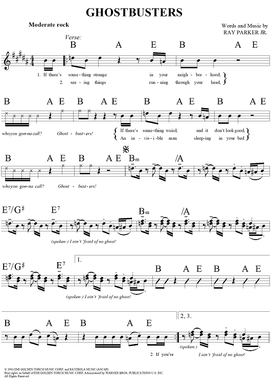 "Ghostbusters" Sheet Music by Ray Parker, Jr.