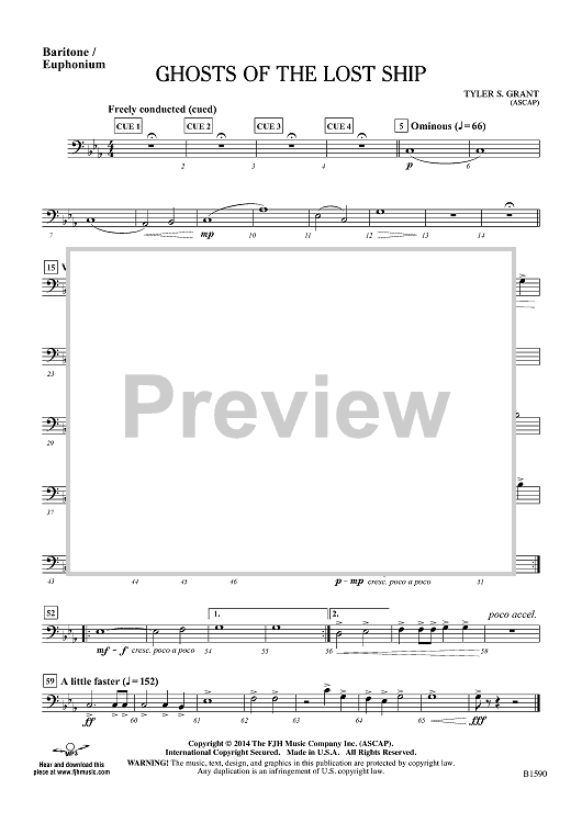 Digital Sheet Music for Ghosts of the Lost Ship - Baritone/Euphonium by Tyler S. Grant scored for Concert Band; id:445938