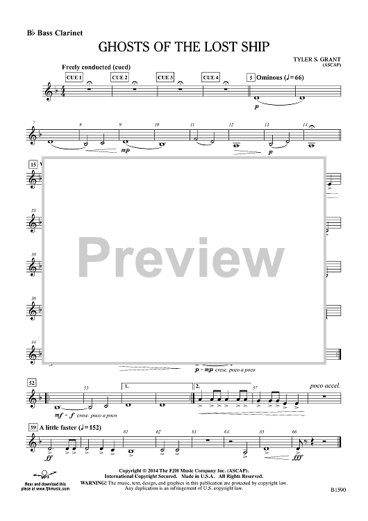 Digital Sheet Music for Ghosts of the Lost Ship - Bb Bass Clarinet by Tyler S. Grant scored for Concert Band; id:445930