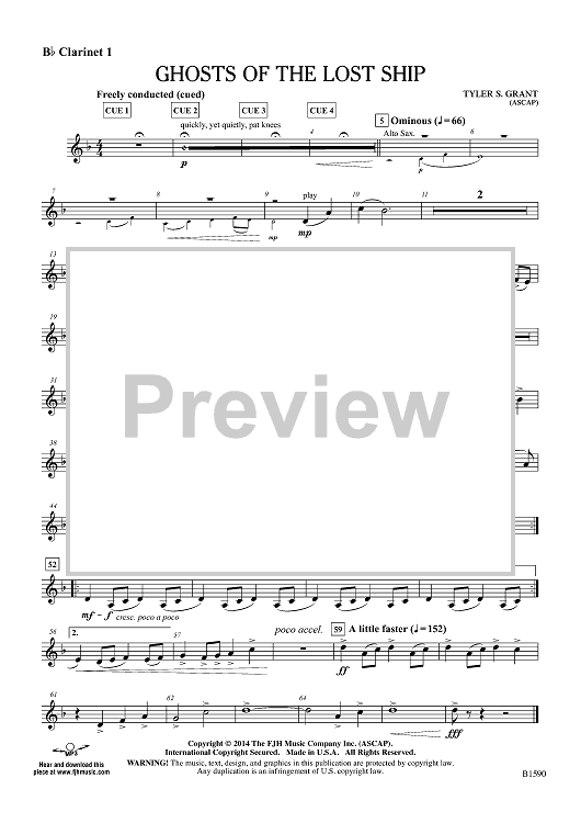 Digital Sheet Music for Ghosts of the Lost Ship - Bb Clarinet 1 by Tyler S. Grant scored for Concert Band; id:445928