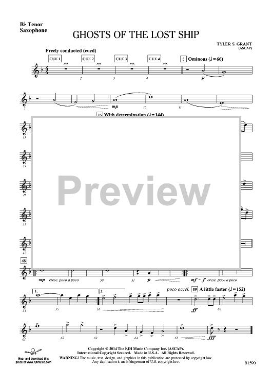 Digital Sheet Music for Ghosts of the Lost Ship - Bb Tenor Sax by Tyler S. Grant scored for Concert Band; id:445932