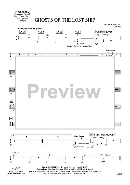 Digital Sheet Music for Ghosts of the Lost Ship - Percussion 3 by Tyler S. Grant scored for Concert Band; id:445945
