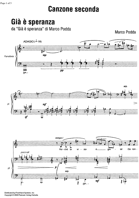 Digital Sheet Music for Già è speranza by , Marco Podda scored for Soprano or Tenor/Piano; id:334417