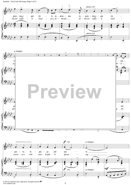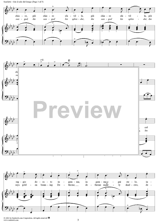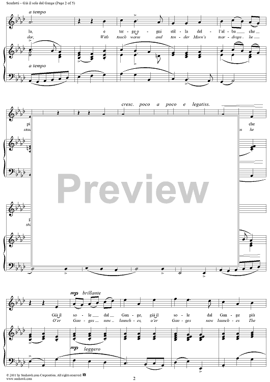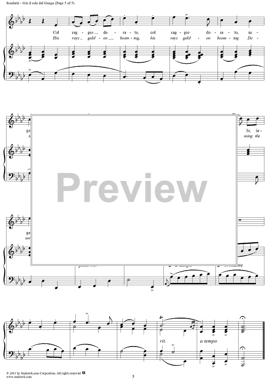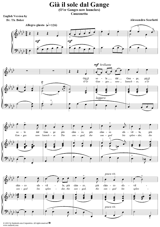 Digital Sheet Music for Già il Sole Dal Gange by Alessandro Scarlatti scored for Voice/Piano; id:256021