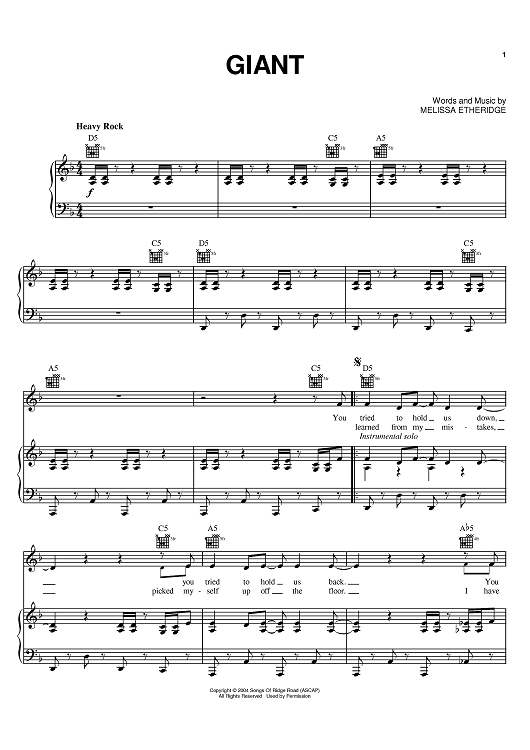 Digital Sheet Music for Giant by Melissa Etheridge scored for Piano/Vocal/Chords; id:386067