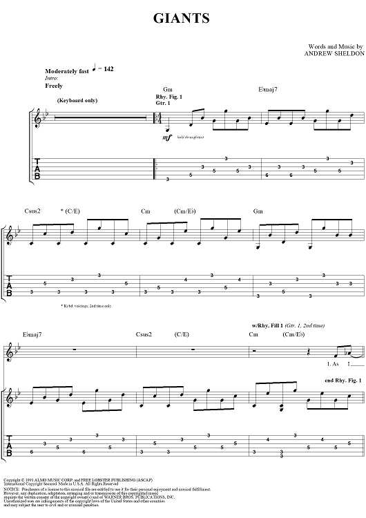 Digital Sheet Music for Giants by The Samples, Andrew Sheldon scored for Guitar Tab/Vocal; id:257604