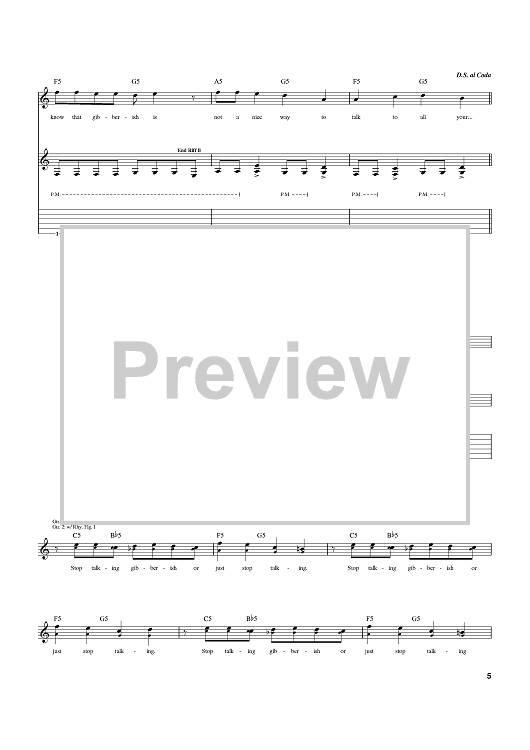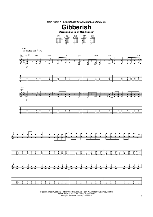 Digital Sheet Music for Gibberish by Relient K, Matt Thiessen scored for Guitar Tab; id:373788