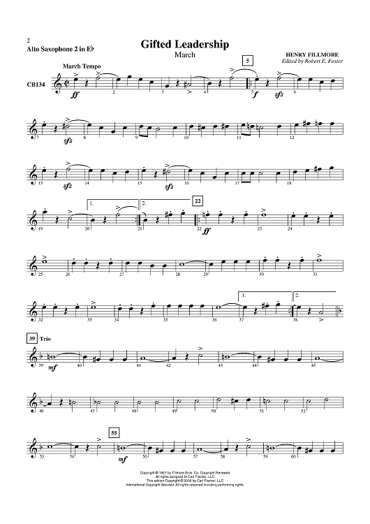 "Gifted Leadership - Alto Sax 2" Sheet Music by Henry Fillmore