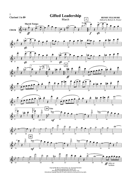 "Gifted Leadership - Clarinet 1 in B-flat" Sheet Music by Henry Fillmore