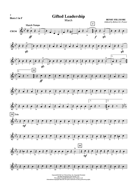 "Gifted Leadership - Horn in F 1" Sheet Music by Henry Fillmore