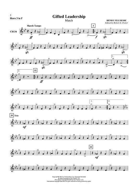 "Gifted Leadership - Horn in F 3" Sheet Music by Henry Fillmore