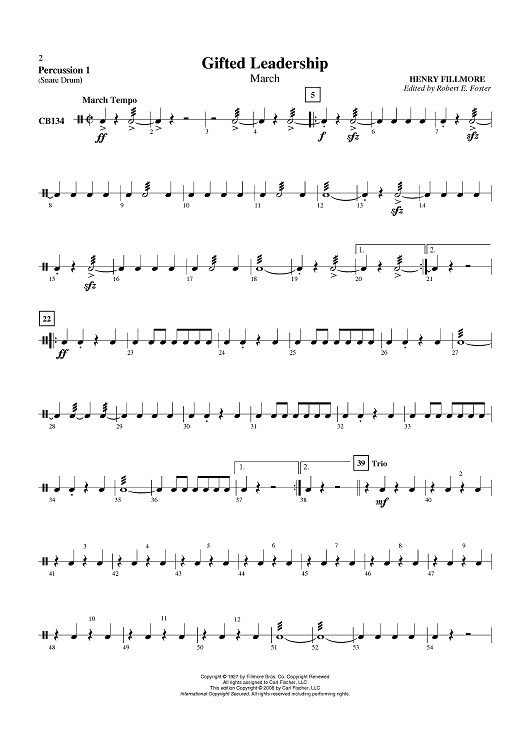"Gifted Leadership - Percussion 1" Sheet Music by Henry Fillmore
