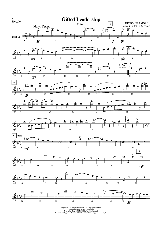 "Gifted Leadership - Piccolo" Sheet Music by Henry Fillmore