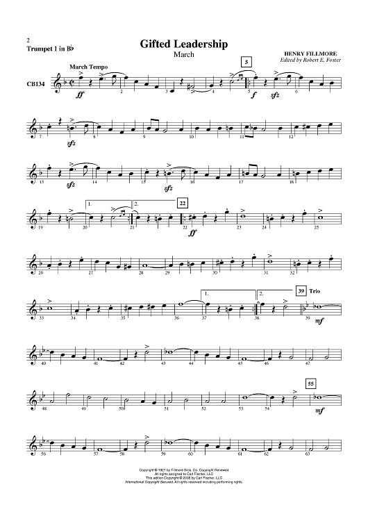 "Gifted Leadership - Trumpet 1 in B-flat" Sheet Music by Henry Fillmore