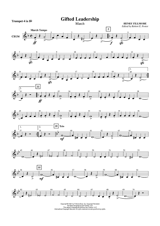 "Gifted Leadership - Trumpet 4 in B-flat" Sheet Music by Henry Fillmore