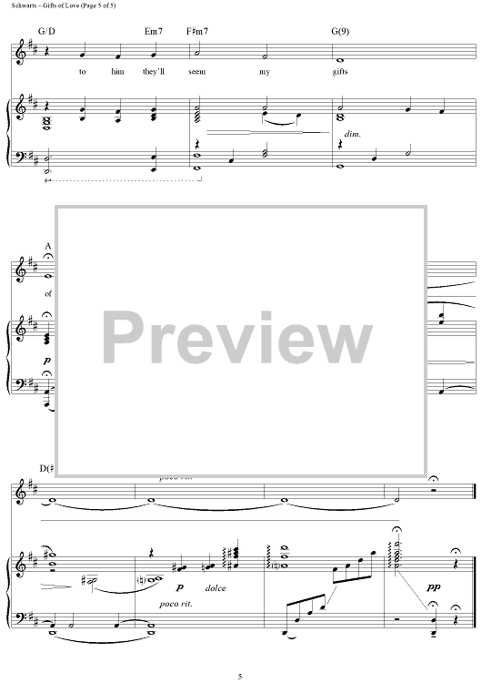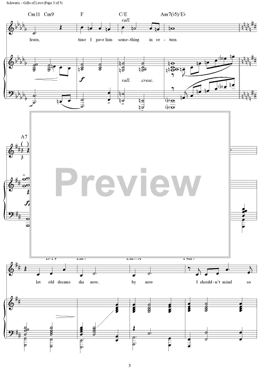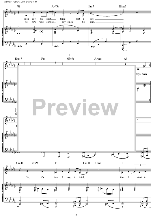 Digital Sheet Music for Gifts of Love by Stephen Schwartz scored for Piano/Vocal/Chords; id:288156
