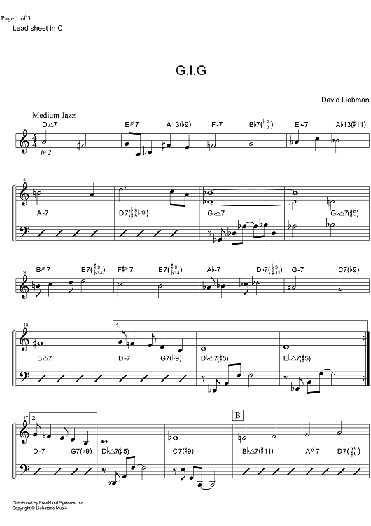Digital Sheet Music for G.I.G. - C Instruments by David Liebman scored for Lead Sheet; id:326601