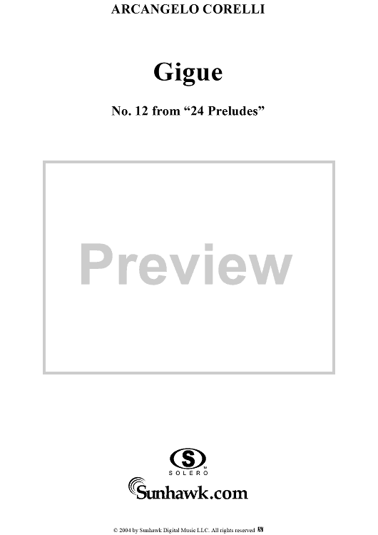 "Gigue in A Major, No. 12 from "Twenty Four Preludes"" Sheet Music by Arcangelo Corelli