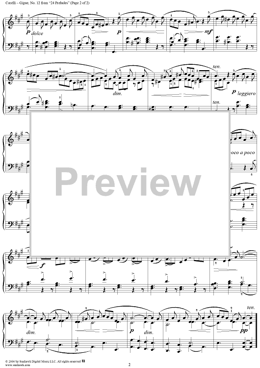 Digital Sheet Music for Gigue in A Major, No. 12 from "Twenty Four Preludes" by Arcangelo Corelli scored for Piano Solo; id:304062