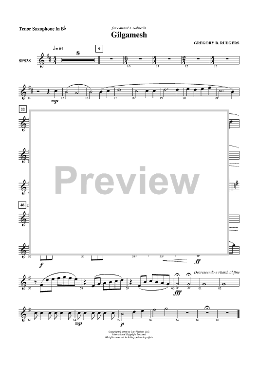 "Gilgamesh - Tenor Sax" Sheet Music by Gregory B. Rudgers
